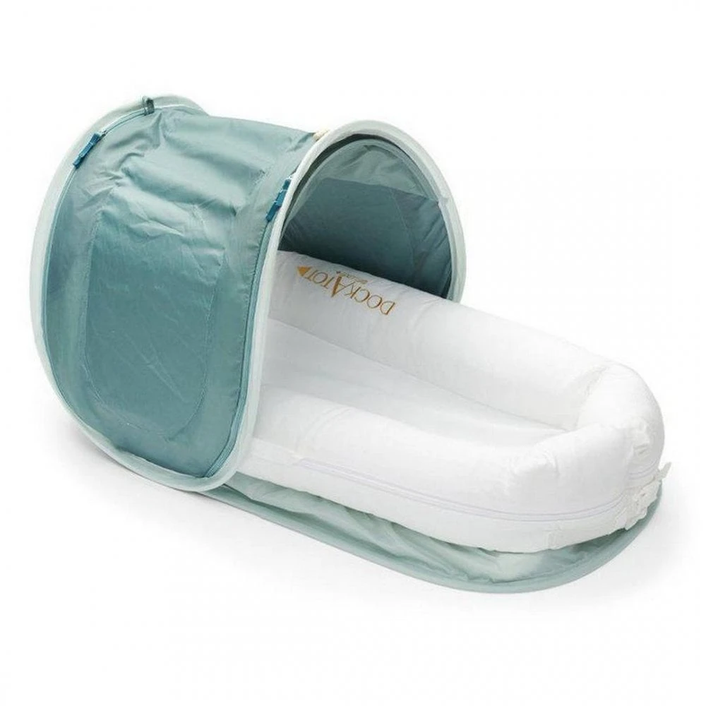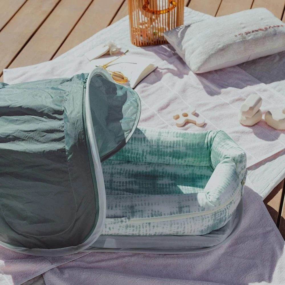 Created just for the Deluxe+, this new must-have for your dock has a retractable UV-protected shade of 50+ SPF, shielding your baby from the sun and other elements to make your time at the beach, lake, or park even more relaxing. The Cabana Kit is also convenient for brightly lit areas when your baby needs shade. With a fitted bottom to protect your dock from the ground and stow-away mosquito net, the Cabana Kit will make every outing with your baby a breeze.