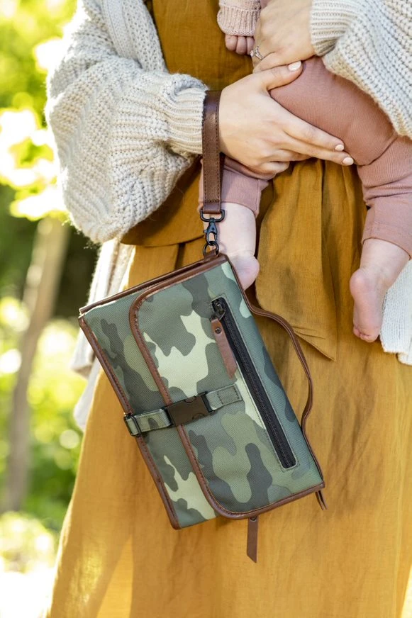 This essential accessory is an all-in-one portable changing clutch for your βin a clutch” moments on the go. Because you have enough to carry, this all-in-one portable changing mat is complete with pockets and pouches to hold all your essentials. Wear it as a cute wristlet or toss it in your bag. Youβll love yourself for being so prepared. The premium canvas fabric lends a luxuriously chic touch.