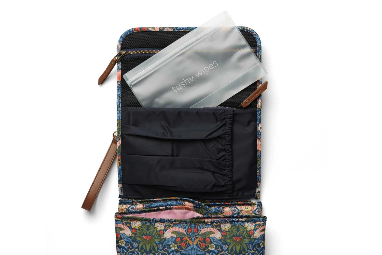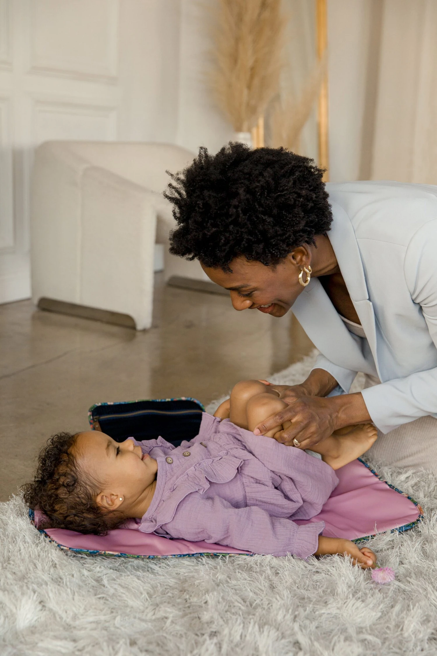 This essential accessory is an all-in-one portable changing clutch for your “in a clutch” moments on the go. Because you have enough to carry, this all-in-one portable changing mat is complete with pockets and pouches to hold all your essentials. Wear it as a cute wristlet or toss it in your bag. You’ll love yourself for being so prepared. The premium canvas fabric lends a luxuriously chic touch.
