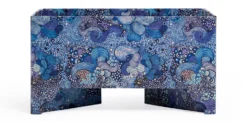 The combination of a warm burnt ochre, with an exciting geranium pink sets an inviting tone for cozy, nighttime rest.