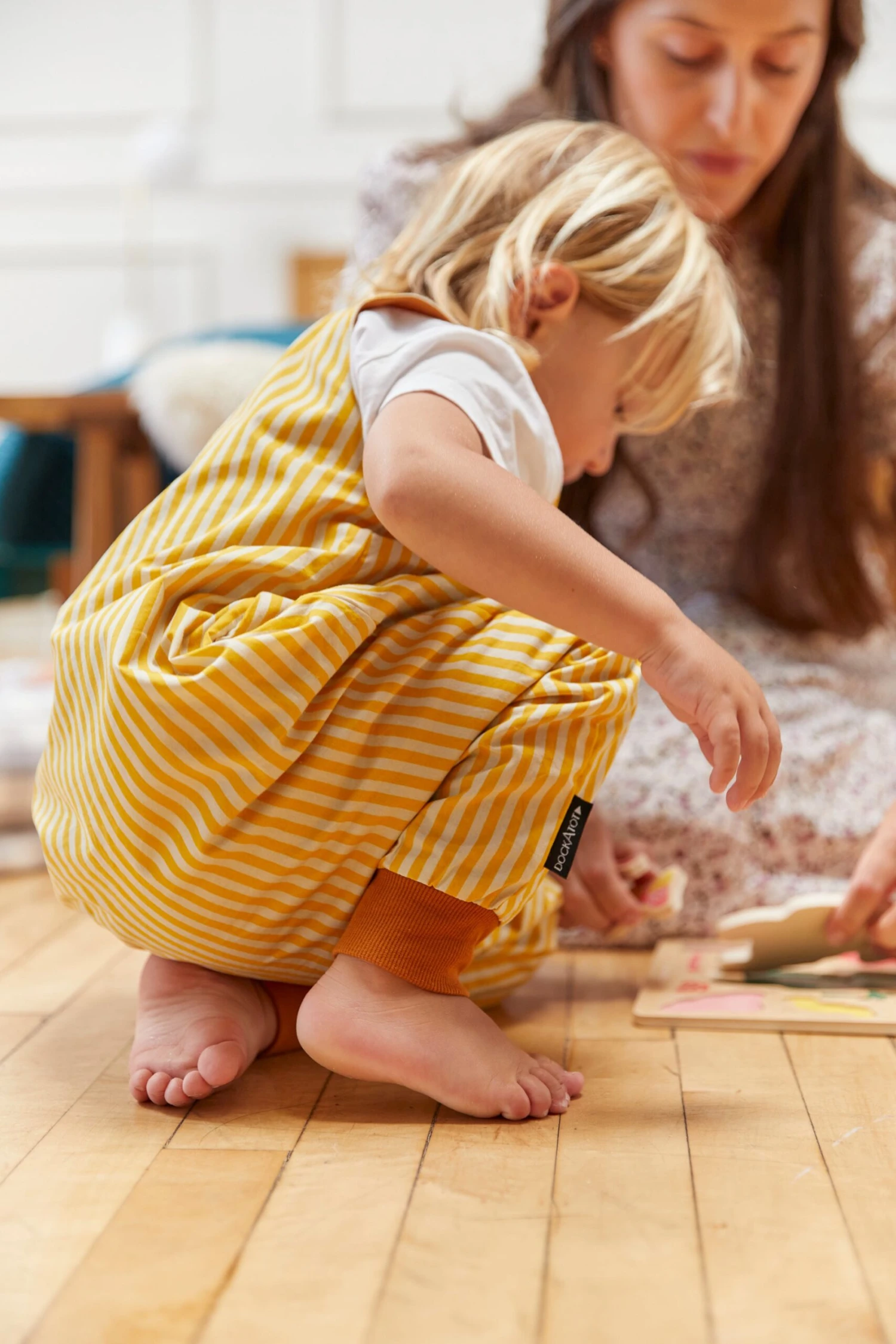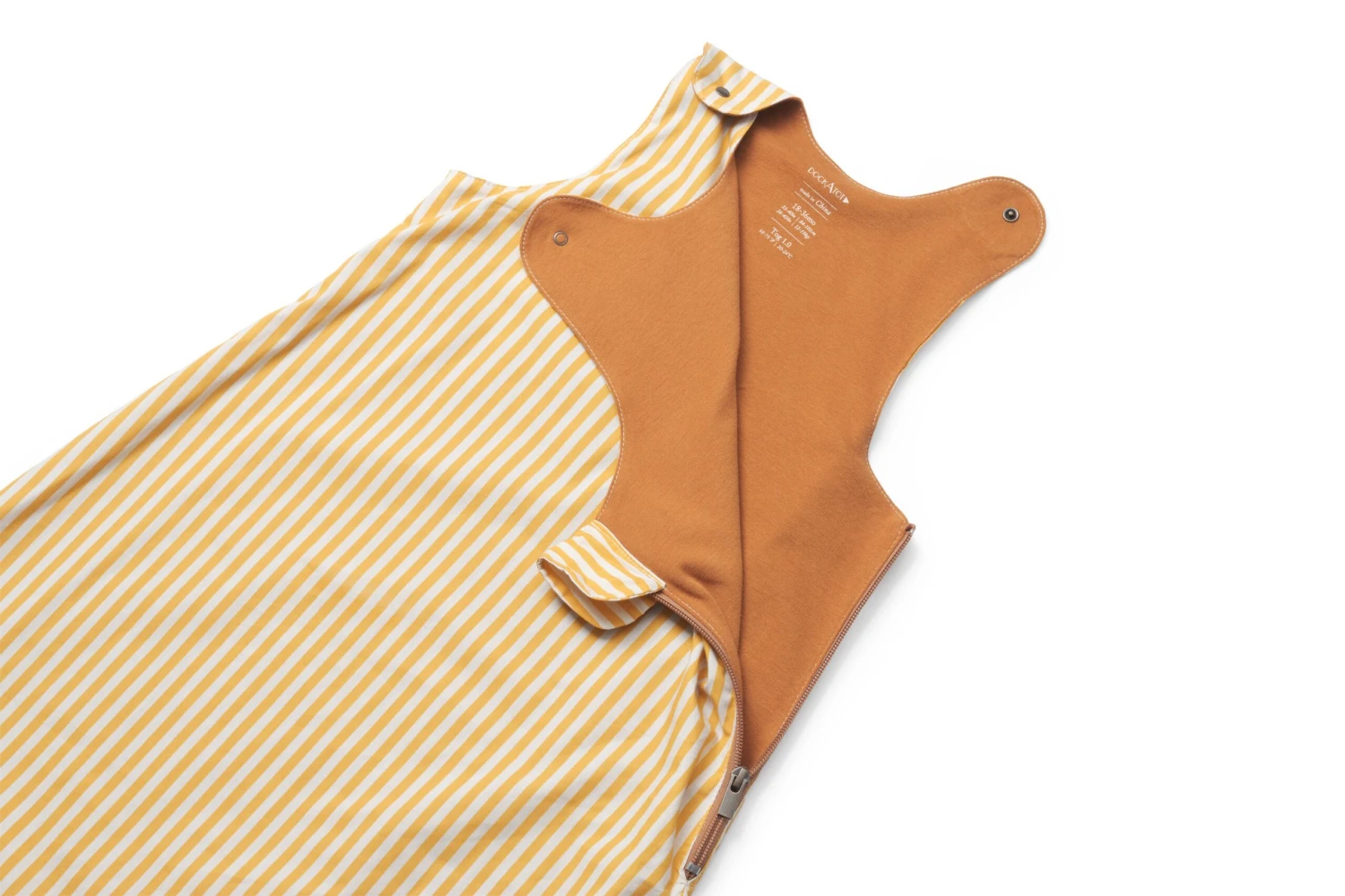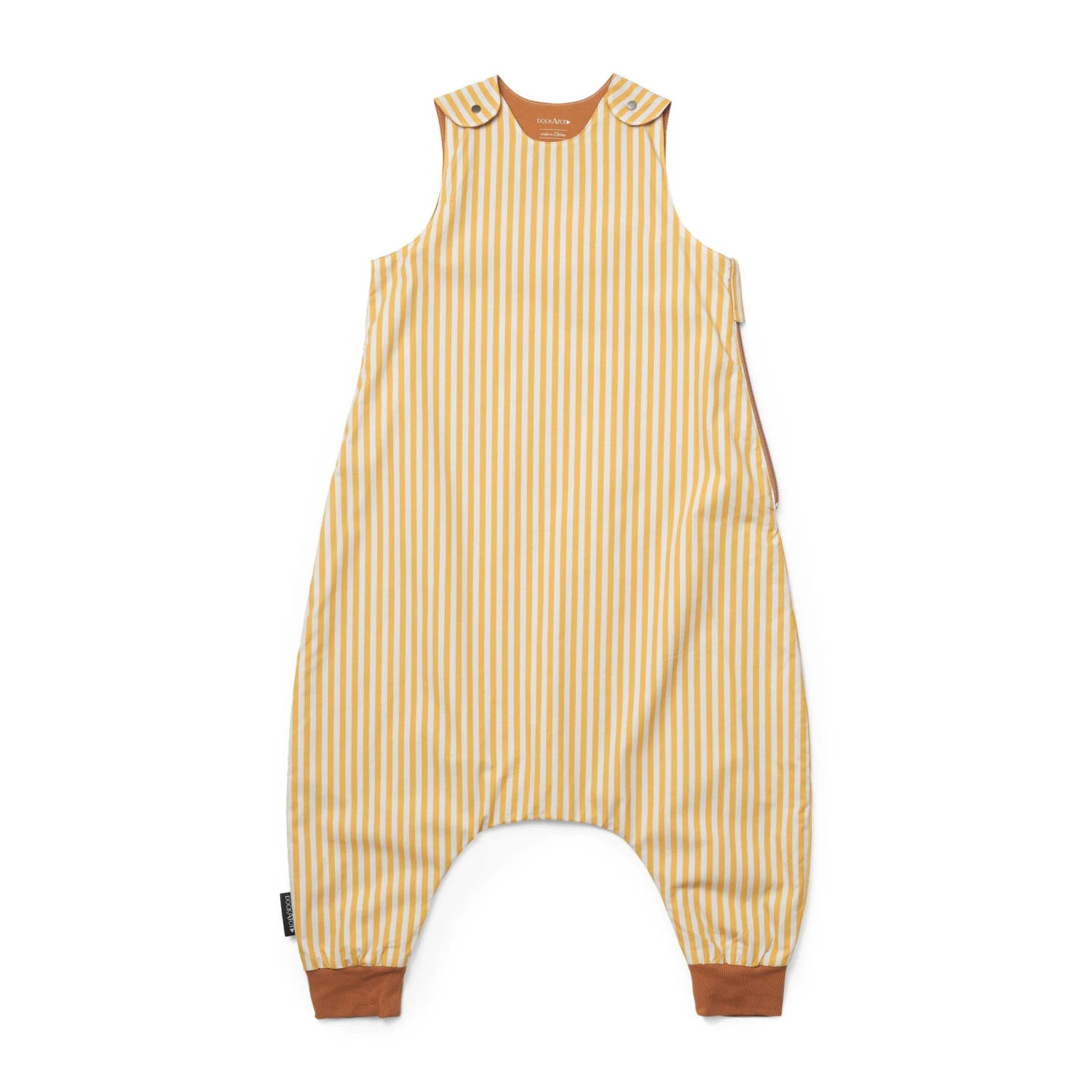 Little ones will earn their stripes with this modern take on a classic style. Our cabana stripes in a golden colourway, with a rich pumpkin spice interior as a perfect complement.Â