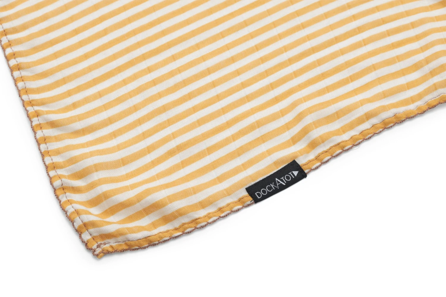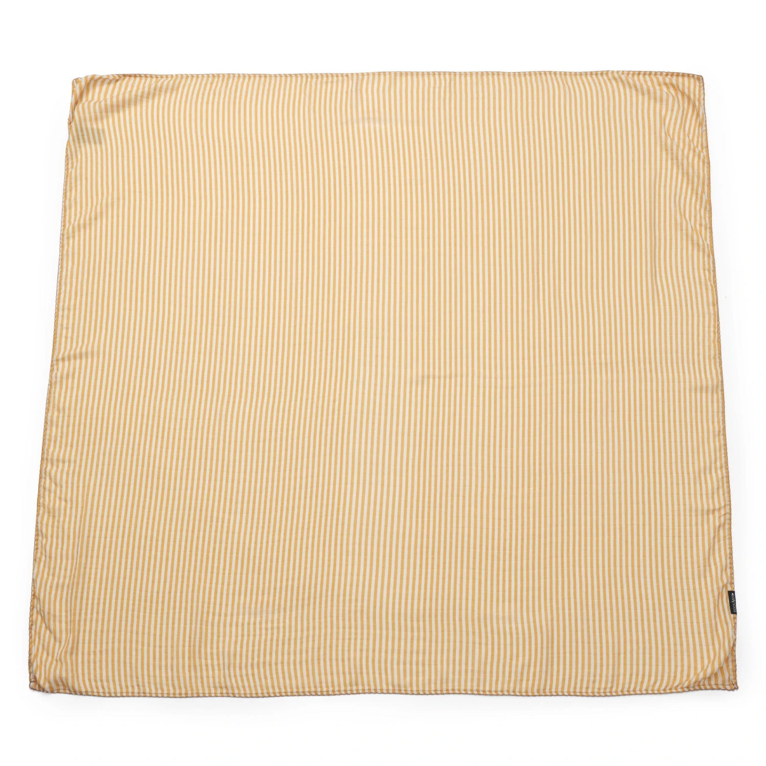 Classic cabana stripes in an optimistic yellow pair perfectly with the deep pumpkin spice solid.