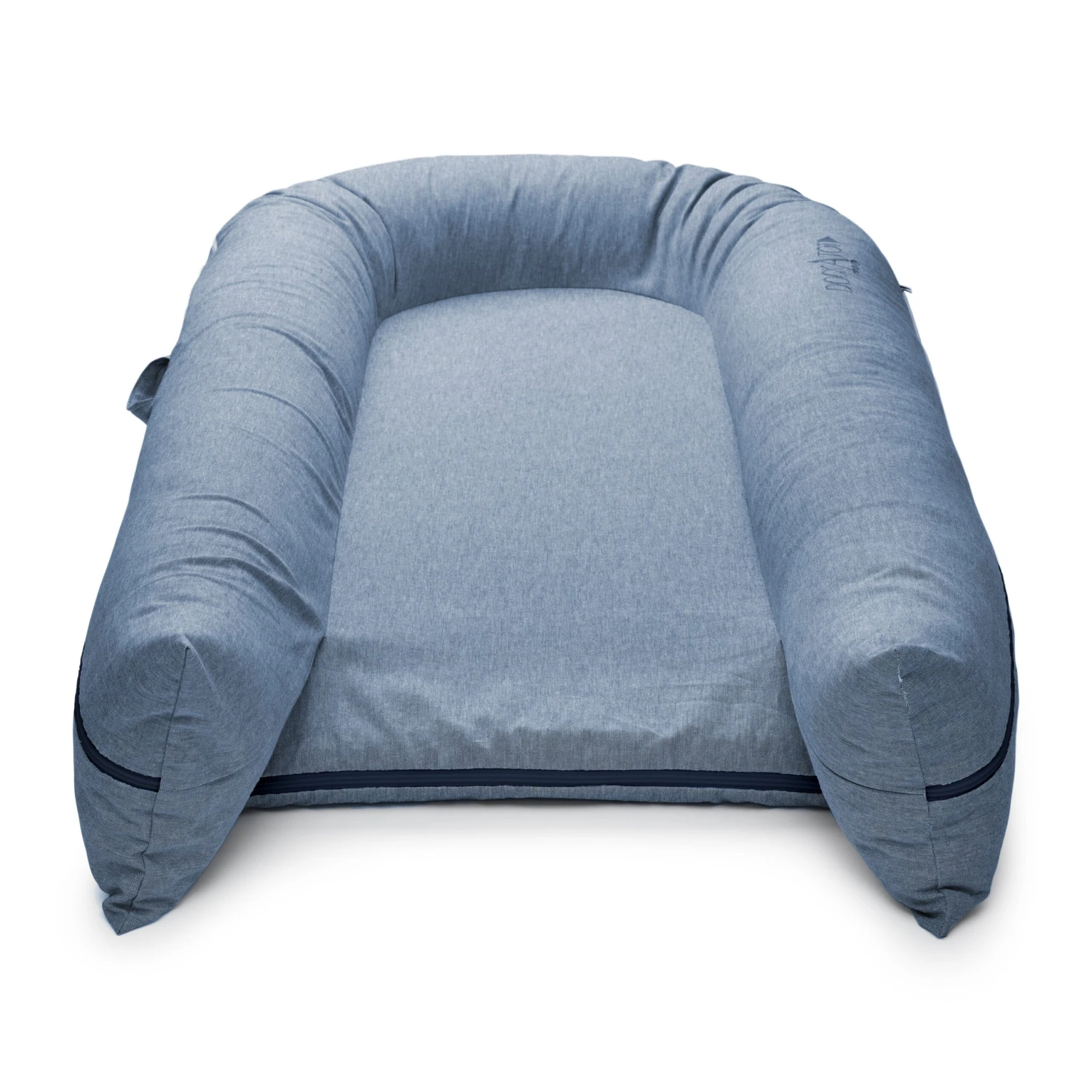 The DockATot® Grand dock is our stage 2 lounging dock, 50% longer and wider, for tots age 9 months to 36+ months. The Grand size is an essential go-to spot for tots lounging around the house or when traveling. The built-in, air permeable side on the Grand dock gives little ones a familiar sense of security. For older tots, the Grand dock will help ease a child into their new setting when they are otherwise ready to sleep in a toddler bed. It provides a comforting and safe environment. Made in Europe. Features include air permeability and Oeko-Tex Standard 100 Class 1 certification (testing for harmful substances).