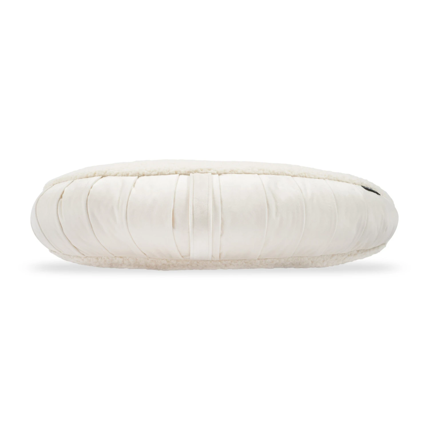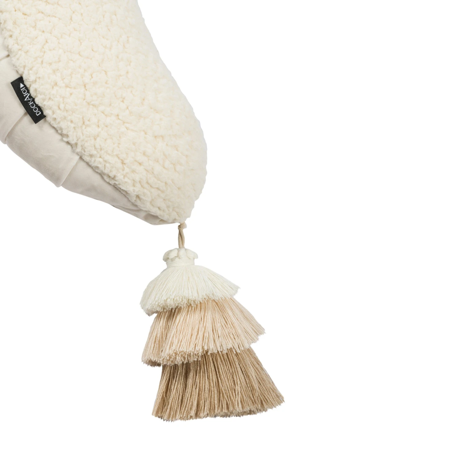 In line with our craftsman approach, we elevate this creamy solid with an ultra-soft boucle, luxe velvet, and tri-toned artisan tassel.Â