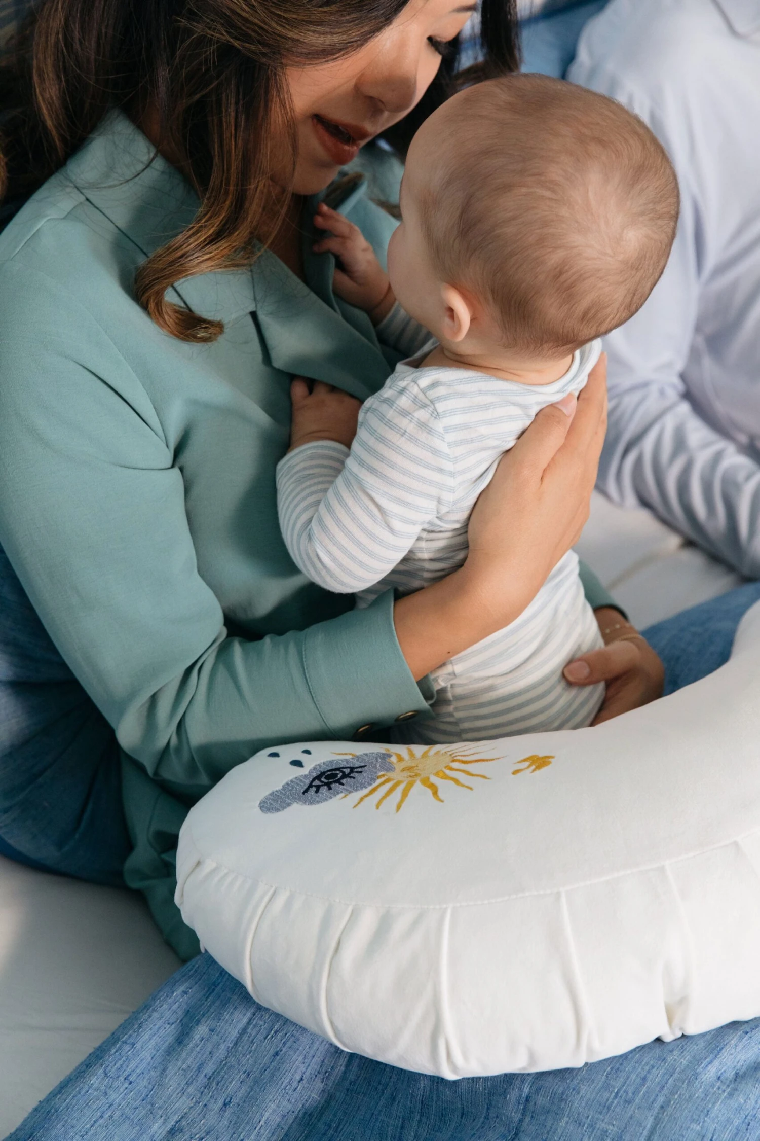 This stylish accent cushion is actually a smartly designed nursing pillow in disguise. Baby bonding time gets taken to new heights with this cradling pillow that curves around the body to support baby or mom’s arms during nursing sessions. You won’t mind leaving this chic nursing pillow out on the couch when company stops by.