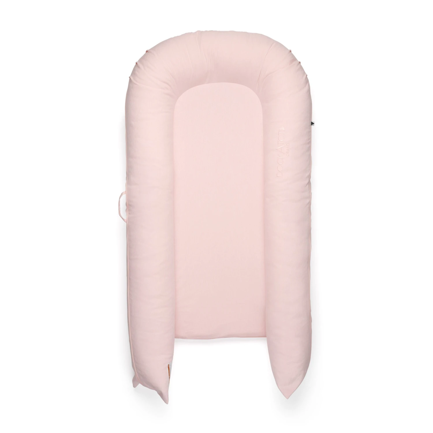 The Grand dock is our stage 2 lounging dock, 50% longer and wider, for tots age 9 months to 36+ months. The Grand size is an essential go-to spot for tots lounging around the house or when traveling. The built-in, air permeable side on the Grand dock gives little ones a familiar sense of security. For older tots, the Grand dock will help ease a child into their new setting when they are otherwise ready to sleep in a toddler bed. It provides a comforting and safe environment. Made in Europe. Features include air permeability and Oeko-Tex Standard 100 Class 1 certification (testing for harmful substances).