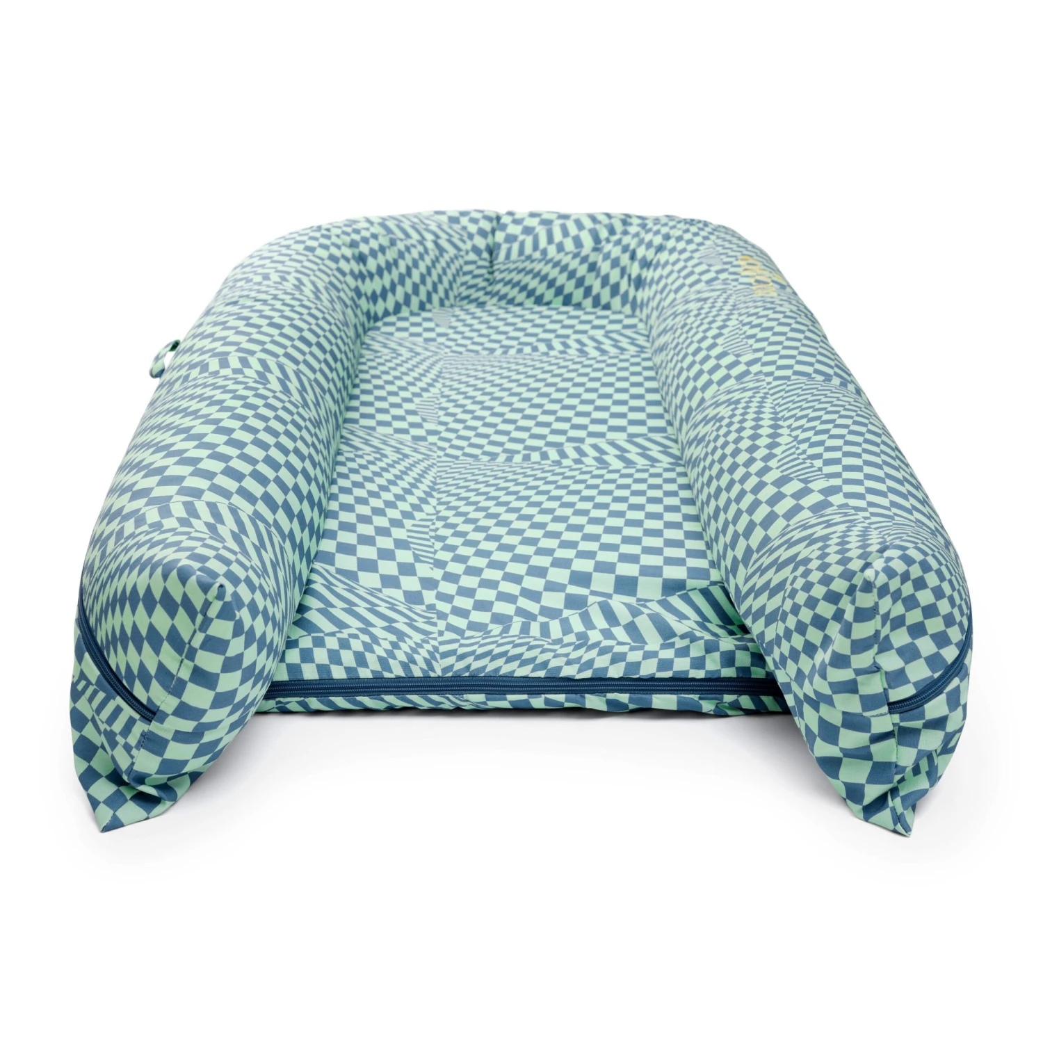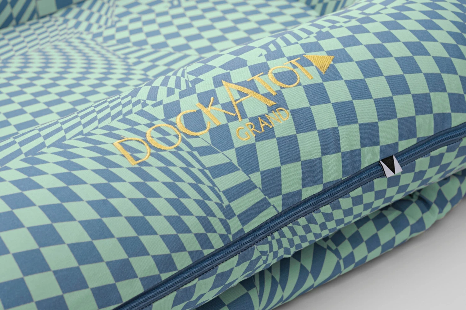 The Grand dock is our stage 2 lounging dock, 50% longer and wider, for tots age 9 months to 36+ months. The Grand size is an essential go-to spot for tots lounging around the house or when traveling. The built-in, air permeable side on the Grand dock gives little ones a familiar sense of security. For older tots, the Grand dock will help ease a child into their new setting when they are otherwise ready to sleep in a toddler bed. It provides a comforting and safe environment. Made in Europe. Features include air permeability and Oeko-Tex Standard 100 Class 1 certification (testing for harmful substances).