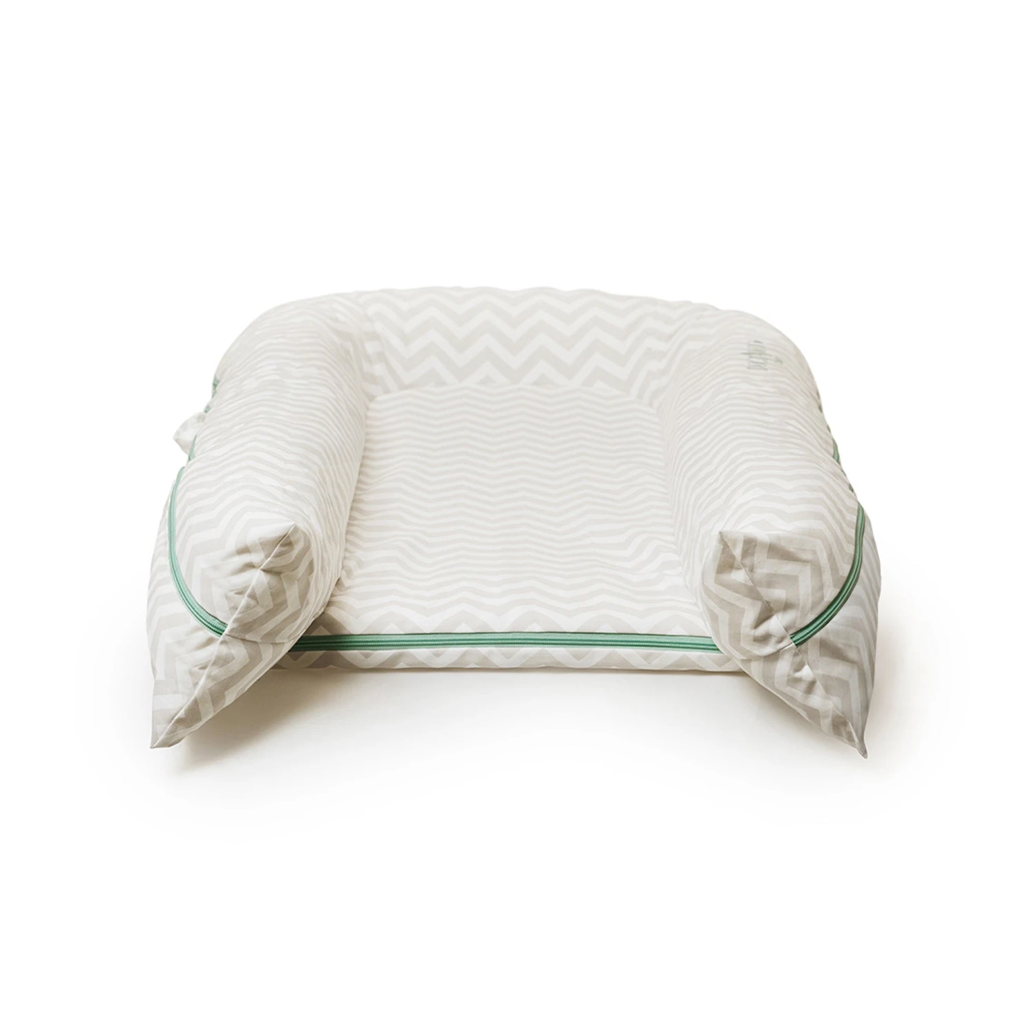The Grand dock is our stage 2 lounging dock, 50% longer and wider, for tots age 9 months to 36+ months. The Grand size is an essential go-to spot for tots lounging around the house or when traveling. The built-in, air permeable side on the Grand dock gives little ones a familiar sense of security. For older tots, the Grand dock will help ease a child into their new setting when they are otherwise ready to sleep in a toddler bed. It provides a comforting and safe environment. Made in Europe. Features include air permeability and Oeko-Tex Standard 100 Class 1 certification (testing for harmful substances).